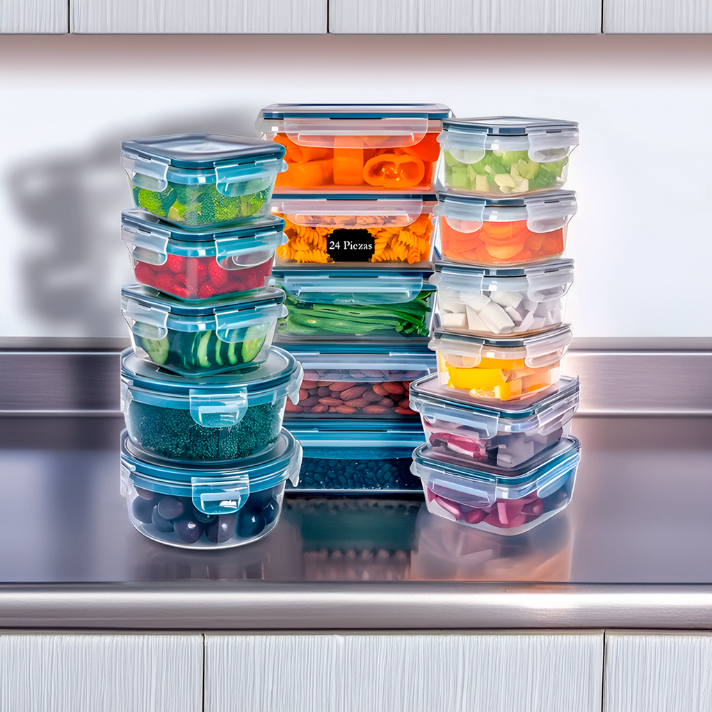 Um kit de 24 potes herméticos com tampa transparente é um conjunto versátil de recipientes de armazenamento projetados para manter os alimentos frescos e organizados. Cada pote possui um design hermético que impede a entrada de ar e umidade, garantindo a preservação da qualidade dos alimentos. A tampa transparente permite visualizar facilmente o conteúdo, facilitando a identificação dos itens armazenados.